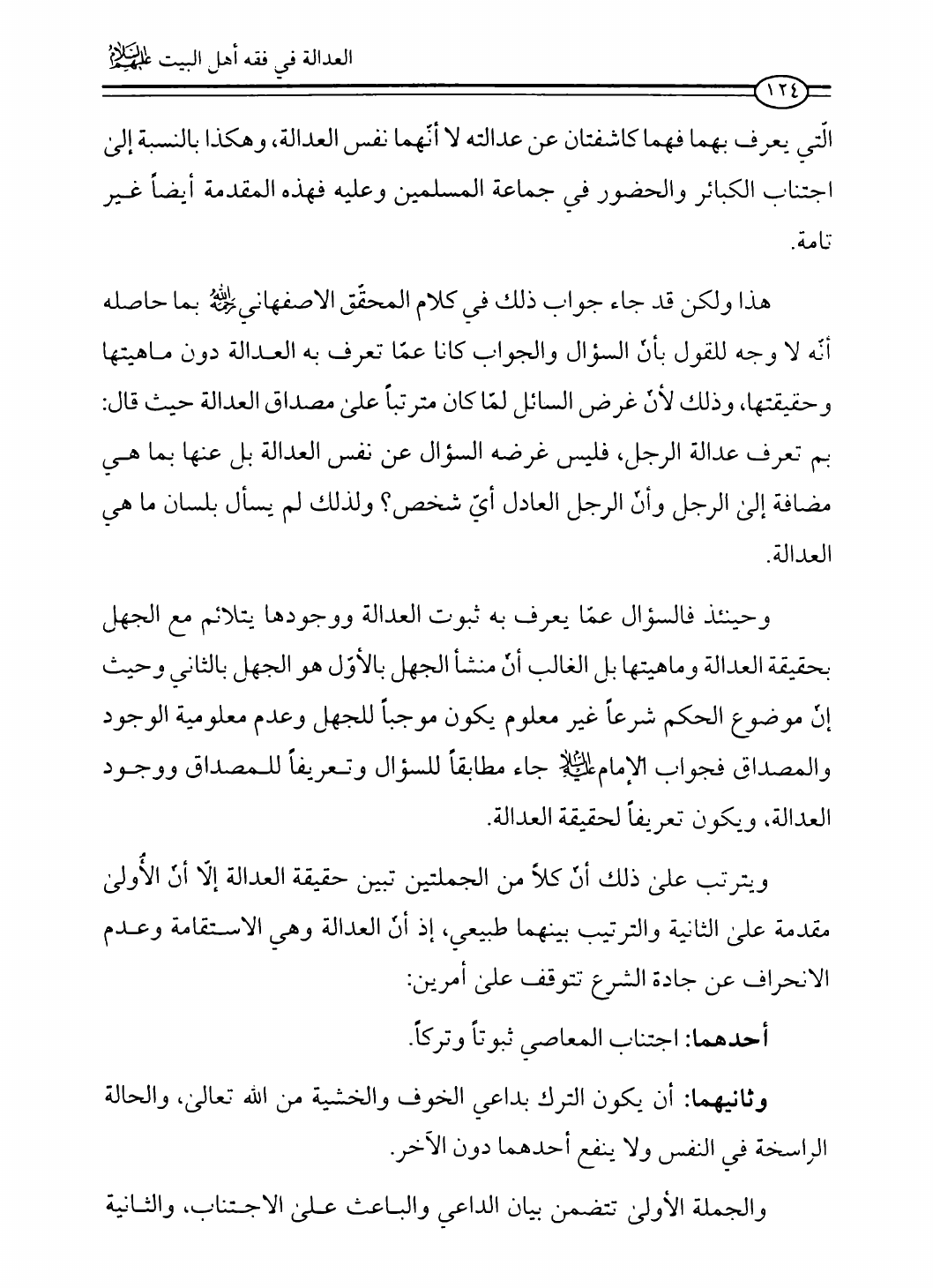 نام کتاب : العدالة في فقه أهل البيت عليهم السلام، تقريراً لبحث أية الله الحاج الشيخ مسلم الداوري نویسنده : الشيخ محمد علي صالح المعلم جلد : 1 صفحه : 124