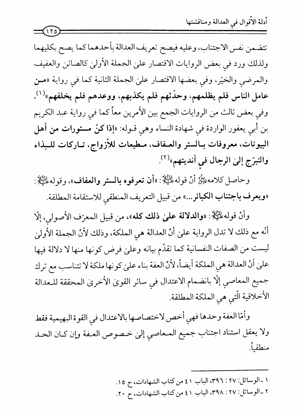 نام کتاب : العدالة في فقه أهل البيت عليهم السلام، تقريراً لبحث أية الله الحاج الشيخ مسلم الداوري نویسنده : الشيخ محمد علي صالح المعلم جلد : 1 صفحه : 125