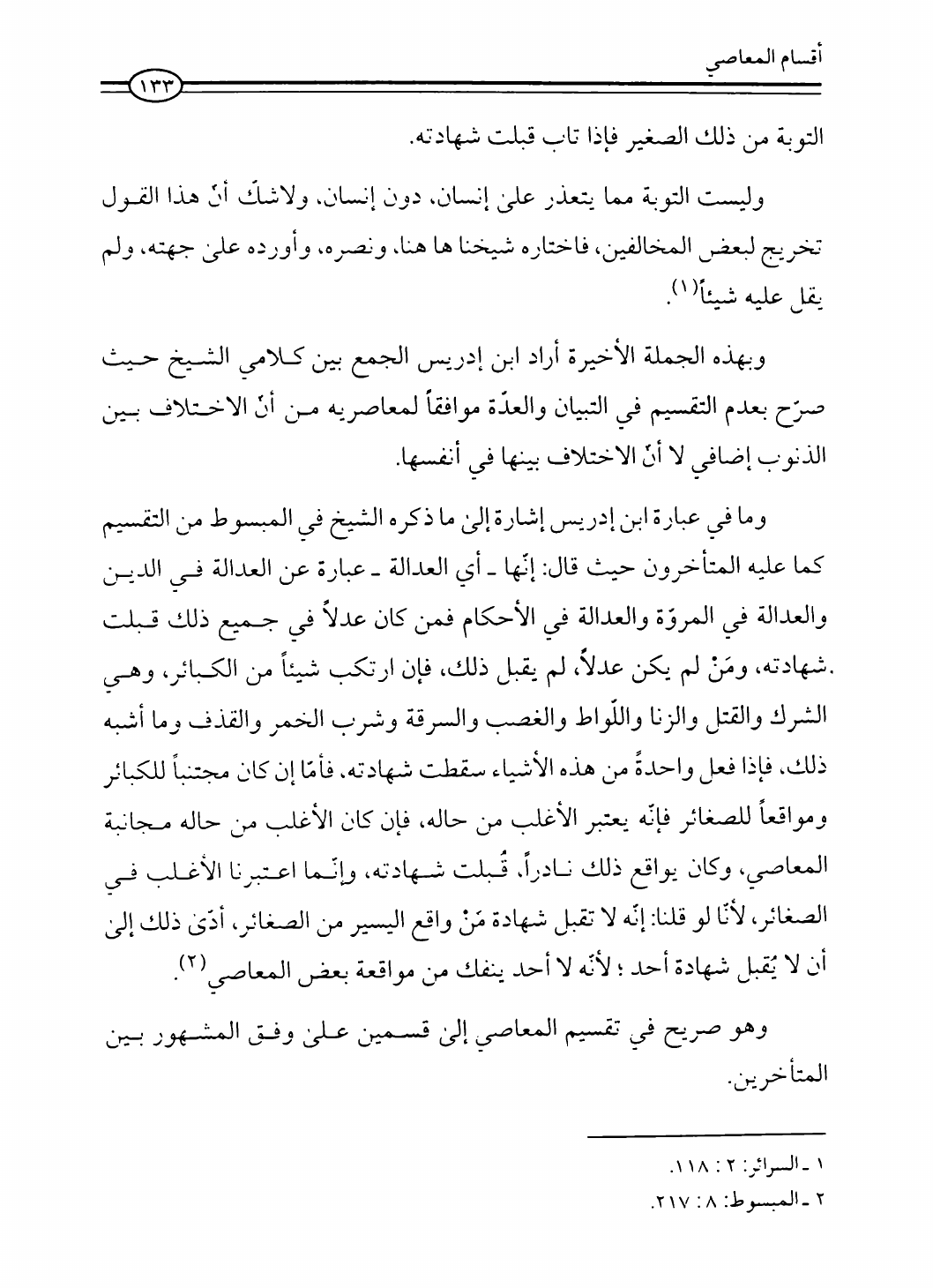 نام کتاب : العدالة في فقه أهل البيت عليهم السلام، تقريراً لبحث أية الله الحاج الشيخ مسلم الداوري نویسنده : الشيخ محمد علي صالح المعلم جلد : 1 صفحه : 133