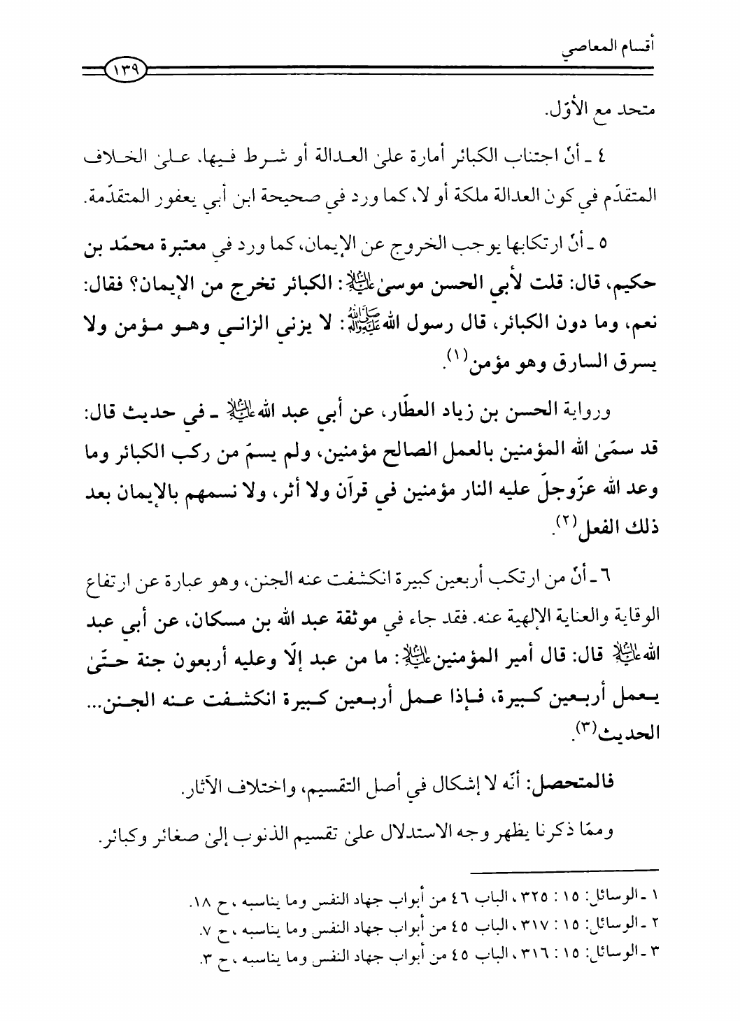 نام کتاب : العدالة في فقه أهل البيت عليهم السلام، تقريراً لبحث أية الله الحاج الشيخ مسلم الداوري نویسنده : الشيخ محمد علي صالح المعلم جلد : 1 صفحه : 139