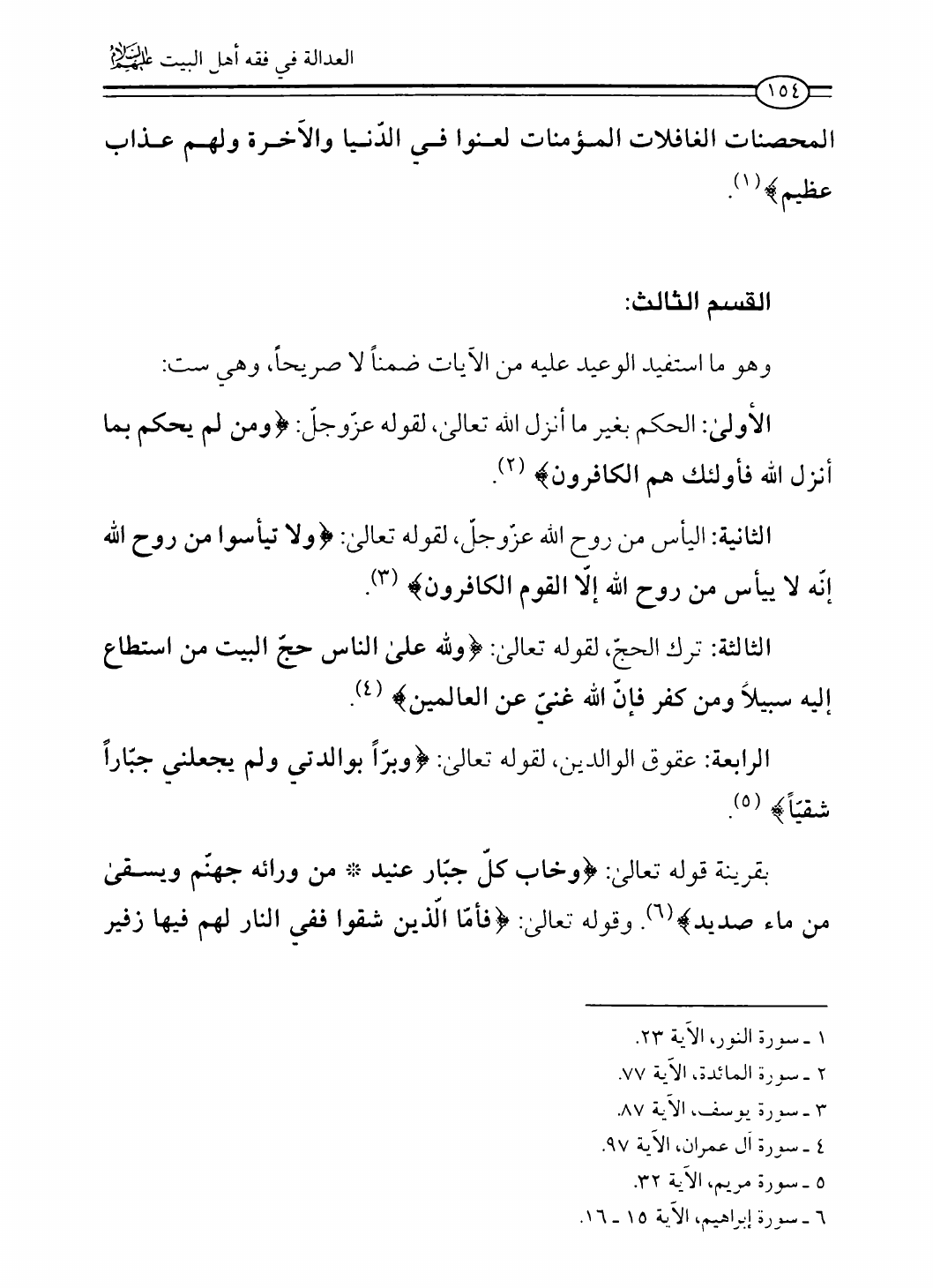 نام کتاب : العدالة في فقه أهل البيت عليهم السلام، تقريراً لبحث أية الله الحاج الشيخ مسلم الداوري نویسنده : الشيخ محمد علي صالح المعلم جلد : 1 صفحه : 154