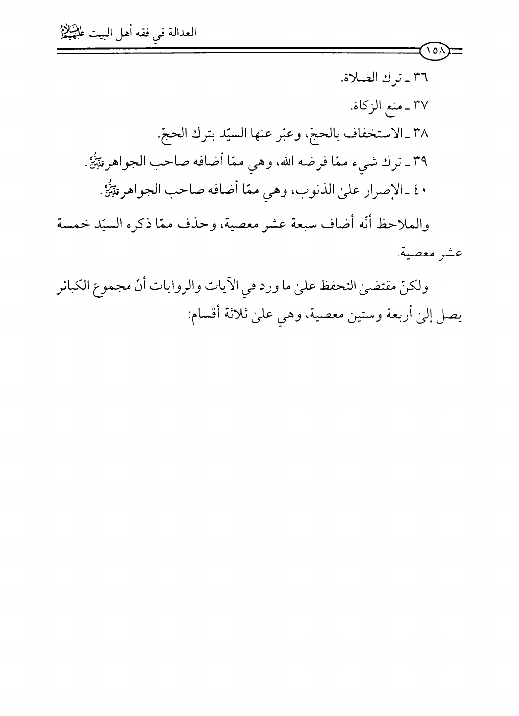 نام کتاب : العدالة في فقه أهل البيت عليهم السلام، تقريراً لبحث أية الله الحاج الشيخ مسلم الداوري نویسنده : الشيخ محمد علي صالح المعلم جلد : 1 صفحه : 158