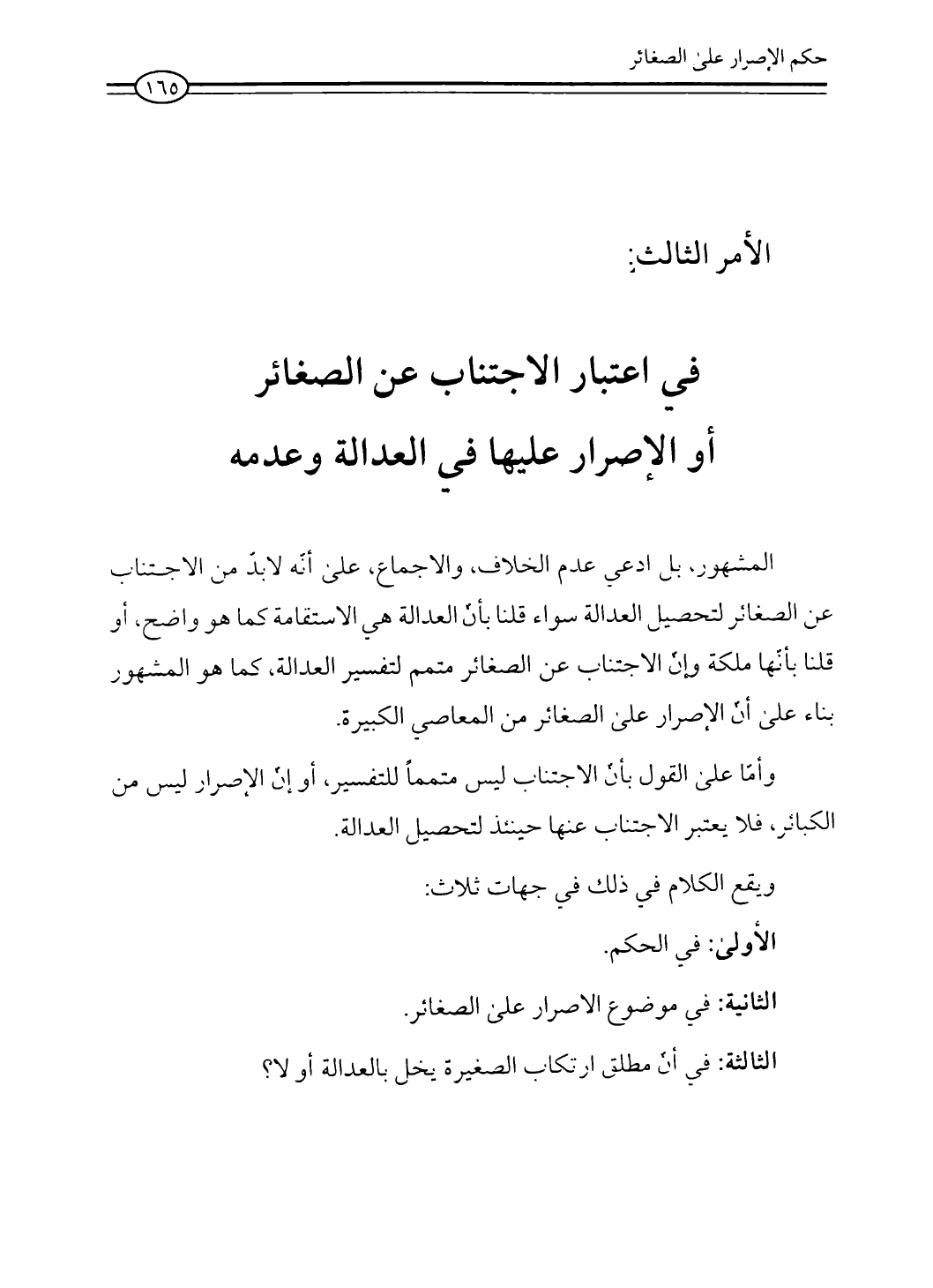 نام کتاب : العدالة في فقه أهل البيت عليهم السلام، تقريراً لبحث أية الله الحاج الشيخ مسلم الداوري نویسنده : الشيخ محمد علي صالح المعلم جلد : 1 صفحه : 165