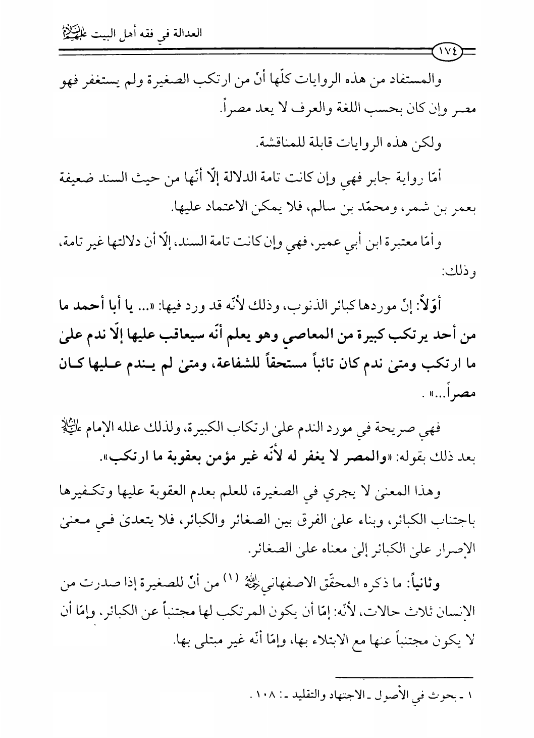 نام کتاب : العدالة في فقه أهل البيت عليهم السلام، تقريراً لبحث أية الله الحاج الشيخ مسلم الداوري نویسنده : الشيخ محمد علي صالح المعلم جلد : 1 صفحه : 174