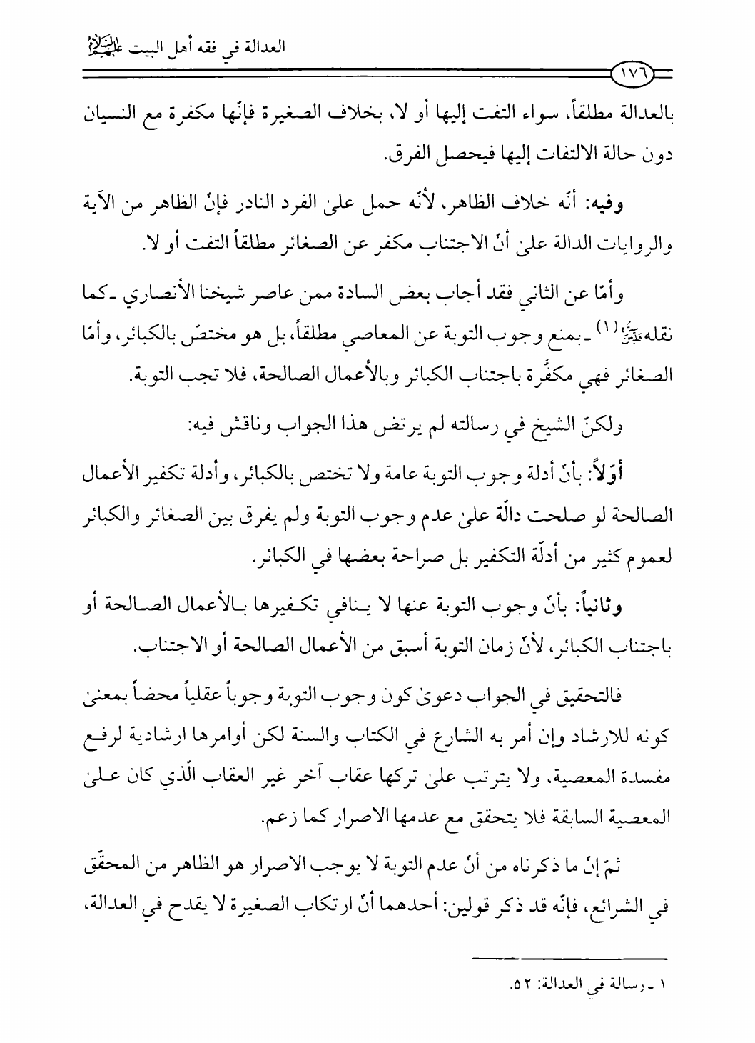نام کتاب : العدالة في فقه أهل البيت عليهم السلام، تقريراً لبحث أية الله الحاج الشيخ مسلم الداوري نویسنده : الشيخ محمد علي صالح المعلم جلد : 1 صفحه : 176