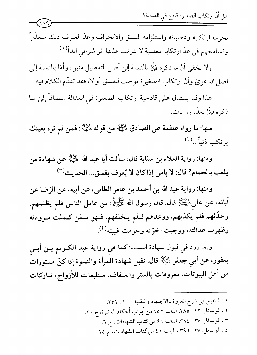 نام کتاب : العدالة في فقه أهل البيت عليهم السلام، تقريراً لبحث أية الله الحاج الشيخ مسلم الداوري نویسنده : الشيخ محمد علي صالح المعلم جلد : 1 صفحه : 189