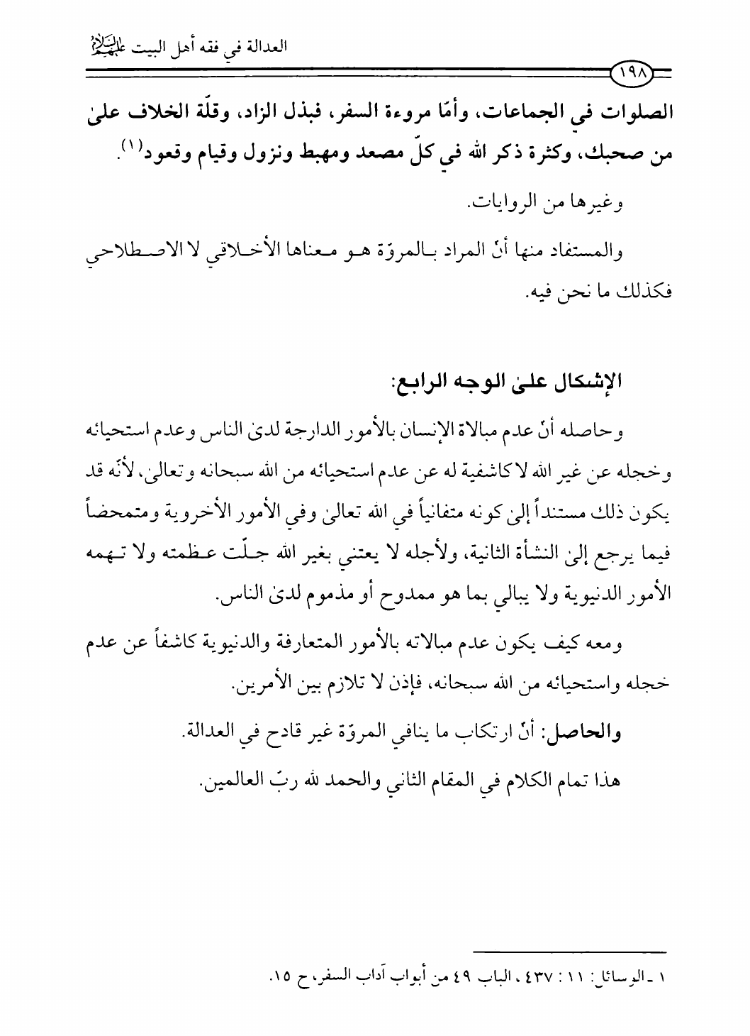 نام کتاب : العدالة في فقه أهل البيت عليهم السلام، تقريراً لبحث أية الله الحاج الشيخ مسلم الداوري نویسنده : الشيخ محمد علي صالح المعلم جلد : 1 صفحه : 198