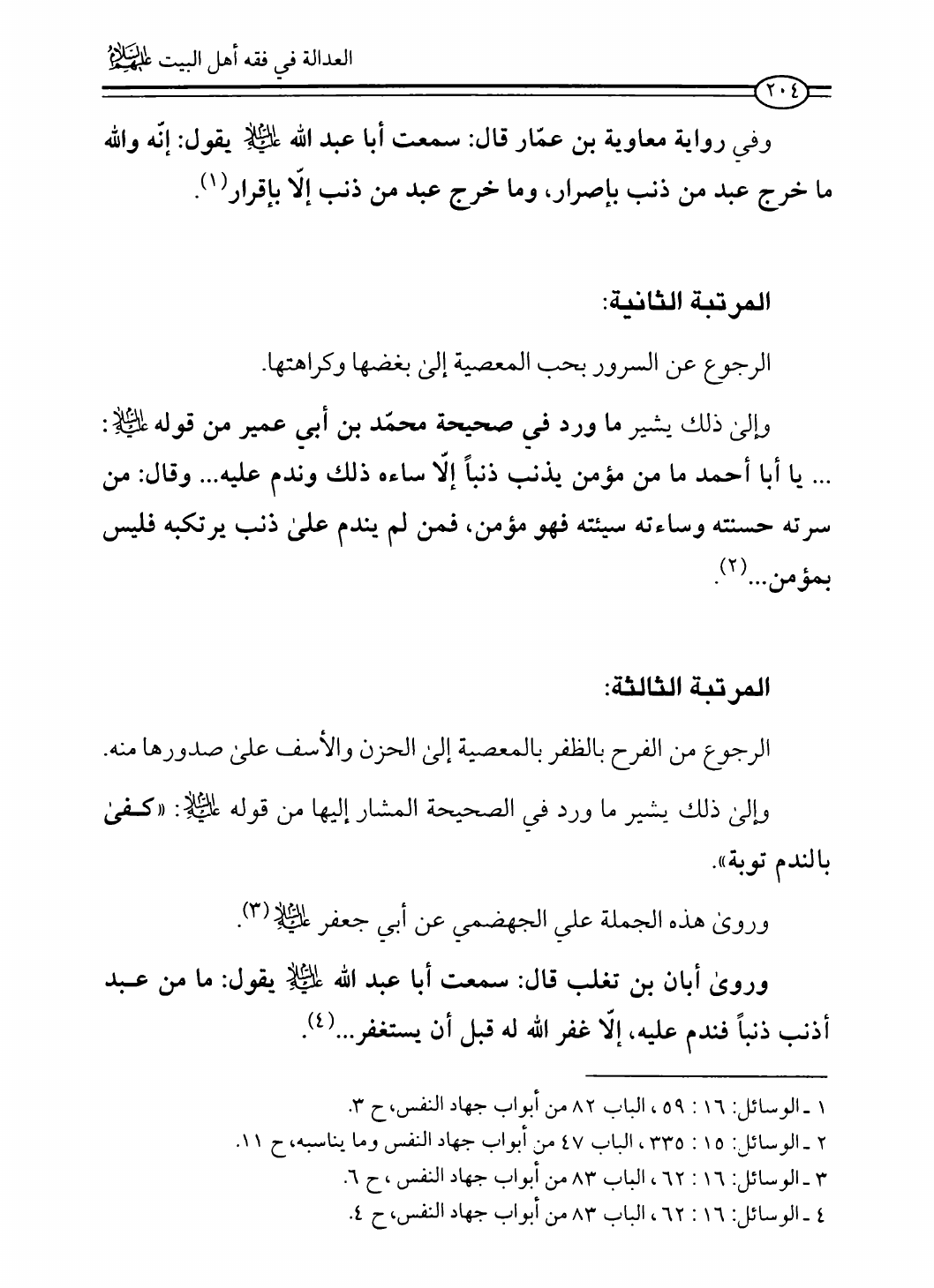 نام کتاب : العدالة في فقه أهل البيت عليهم السلام، تقريراً لبحث أية الله الحاج الشيخ مسلم الداوري نویسنده : الشيخ محمد علي صالح المعلم جلد : 1 صفحه : 204