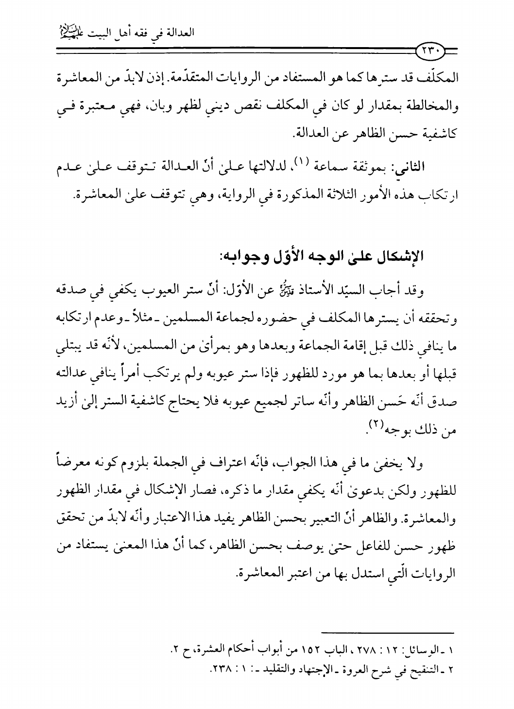 نام کتاب : العدالة في فقه أهل البيت عليهم السلام، تقريراً لبحث أية الله الحاج الشيخ مسلم الداوري نویسنده : الشيخ محمد علي صالح المعلم جلد : 1 صفحه : 230