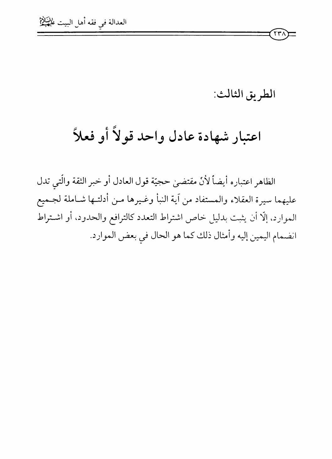 نام کتاب : العدالة في فقه أهل البيت عليهم السلام، تقريراً لبحث أية الله الحاج الشيخ مسلم الداوري نویسنده : الشيخ محمد علي صالح المعلم جلد : 1 صفحه : 238