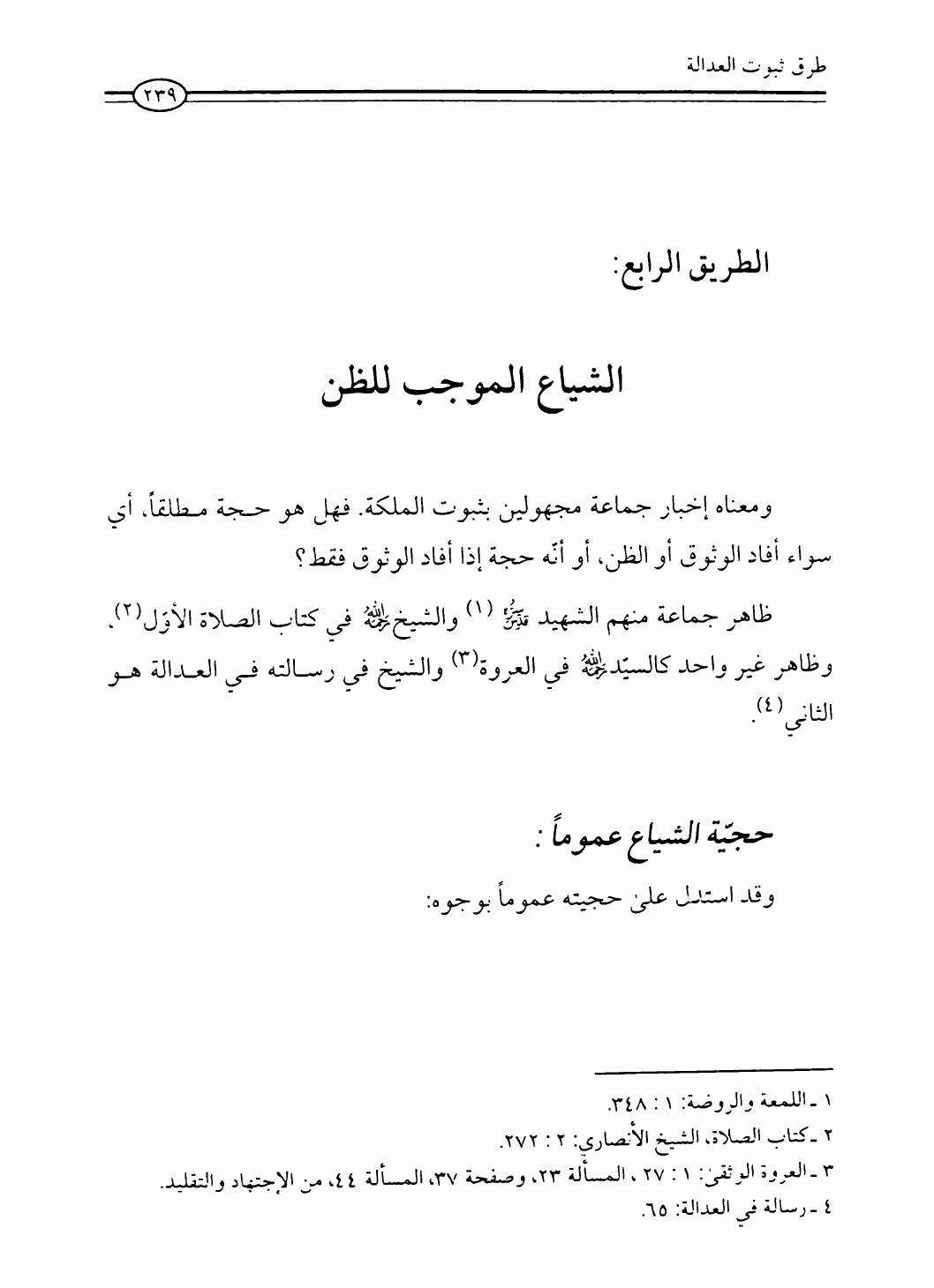 نام کتاب : العدالة في فقه أهل البيت عليهم السلام، تقريراً لبحث أية الله الحاج الشيخ مسلم الداوري نویسنده : الشيخ محمد علي صالح المعلم جلد : 1 صفحه : 239