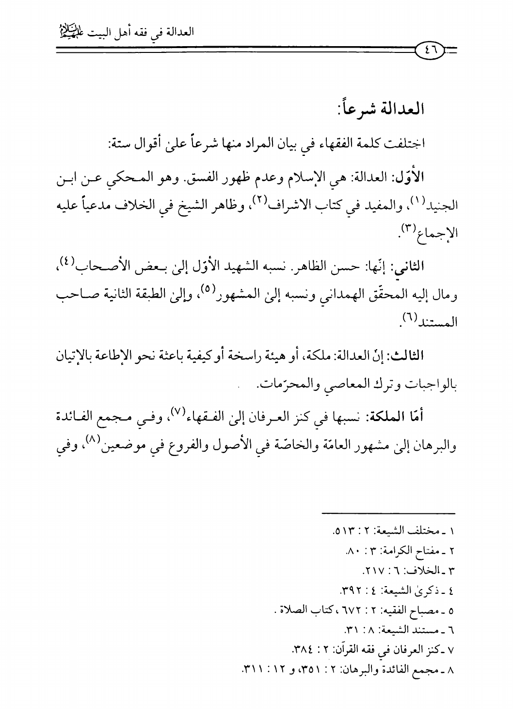 نام کتاب : العدالة في فقه أهل البيت عليهم السلام، تقريراً لبحث أية الله الحاج الشيخ مسلم الداوري نویسنده : الشيخ محمد علي صالح المعلم جلد : 1 صفحه : 46