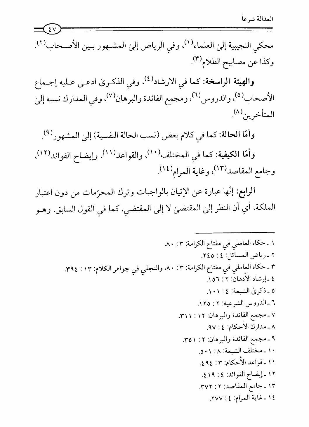 نام کتاب : العدالة في فقه أهل البيت عليهم السلام، تقريراً لبحث أية الله الحاج الشيخ مسلم الداوري نویسنده : الشيخ محمد علي صالح المعلم جلد : 1 صفحه : 47