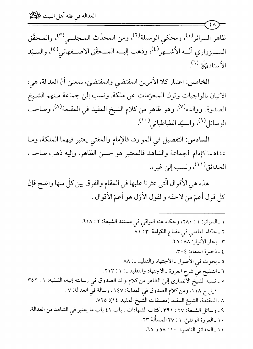نام کتاب : العدالة في فقه أهل البيت عليهم السلام، تقريراً لبحث أية الله الحاج الشيخ مسلم الداوري نویسنده : الشيخ محمد علي صالح المعلم جلد : 1 صفحه : 48