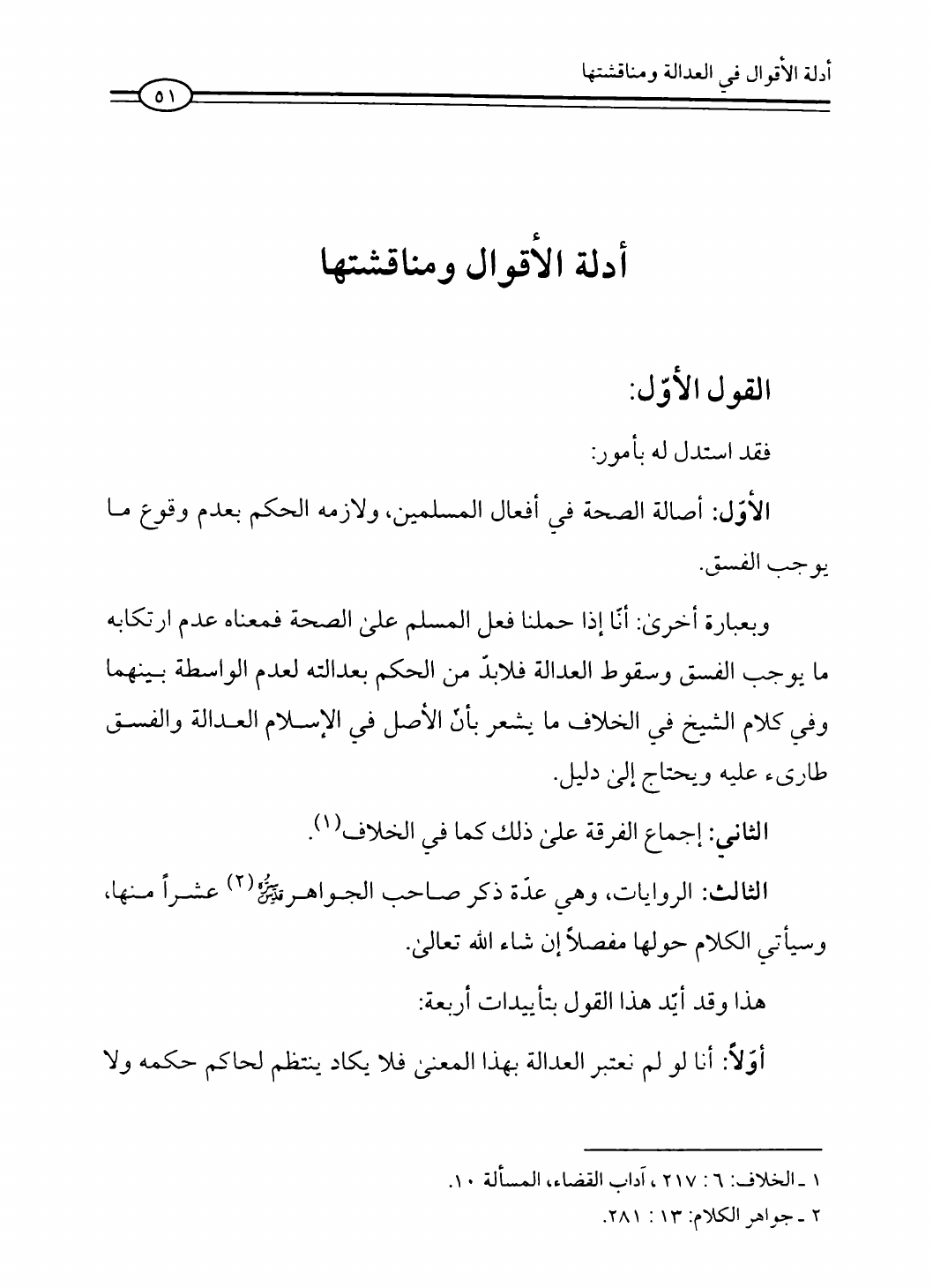 نام کتاب : العدالة في فقه أهل البيت عليهم السلام، تقريراً لبحث أية الله الحاج الشيخ مسلم الداوري نویسنده : الشيخ محمد علي صالح المعلم جلد : 1 صفحه : 51