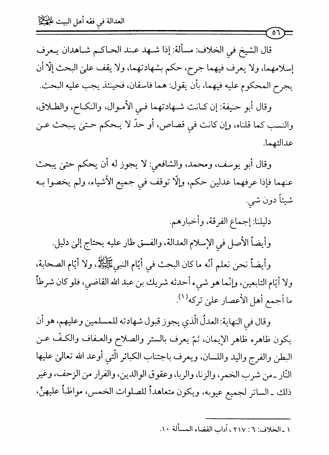 نام کتاب : العدالة في فقه أهل البيت عليهم السلام، تقريراً لبحث أية الله الحاج الشيخ مسلم الداوري نویسنده : الشيخ محمد علي صالح المعلم جلد : 1 صفحه : 56
