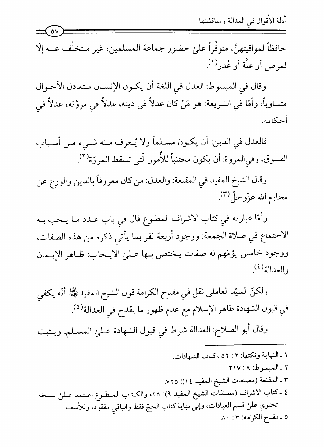 نام کتاب : العدالة في فقه أهل البيت عليهم السلام، تقريراً لبحث أية الله الحاج الشيخ مسلم الداوري نویسنده : الشيخ محمد علي صالح المعلم جلد : 1 صفحه : 57