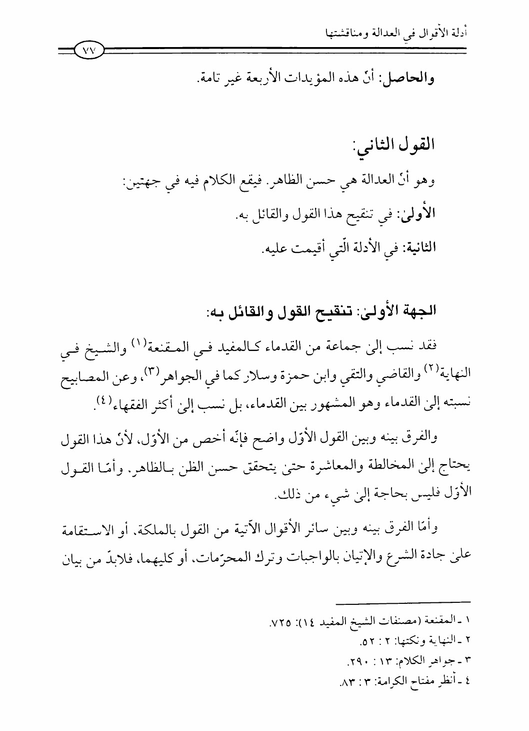 نام کتاب : العدالة في فقه أهل البيت عليهم السلام، تقريراً لبحث أية الله الحاج الشيخ مسلم الداوري نویسنده : الشيخ محمد علي صالح المعلم جلد : 1 صفحه : 77