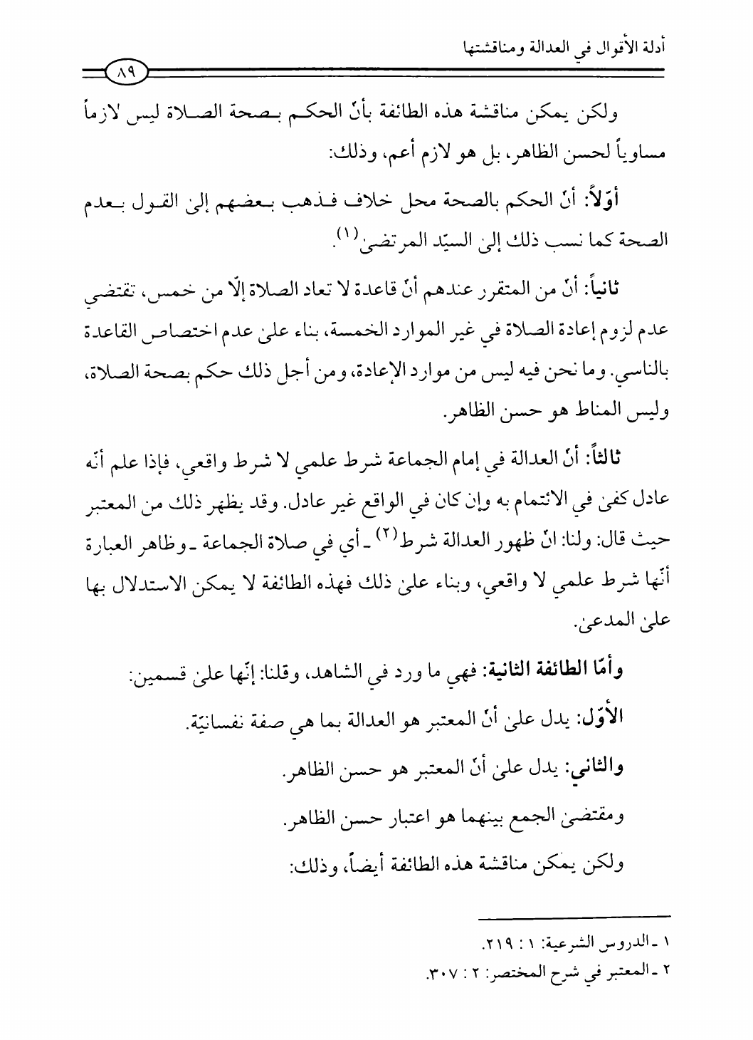 نام کتاب : العدالة في فقه أهل البيت عليهم السلام، تقريراً لبحث أية الله الحاج الشيخ مسلم الداوري نویسنده : الشيخ محمد علي صالح المعلم جلد : 1 صفحه : 89