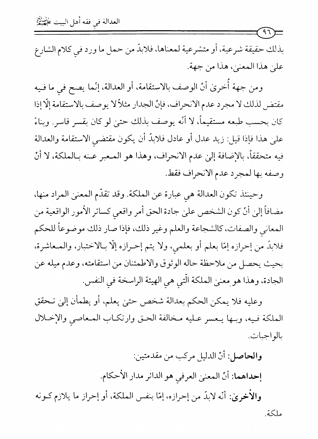 نام کتاب : العدالة في فقه أهل البيت عليهم السلام، تقريراً لبحث أية الله الحاج الشيخ مسلم الداوري نویسنده : الشيخ محمد علي صالح المعلم جلد : 1 صفحه : 96