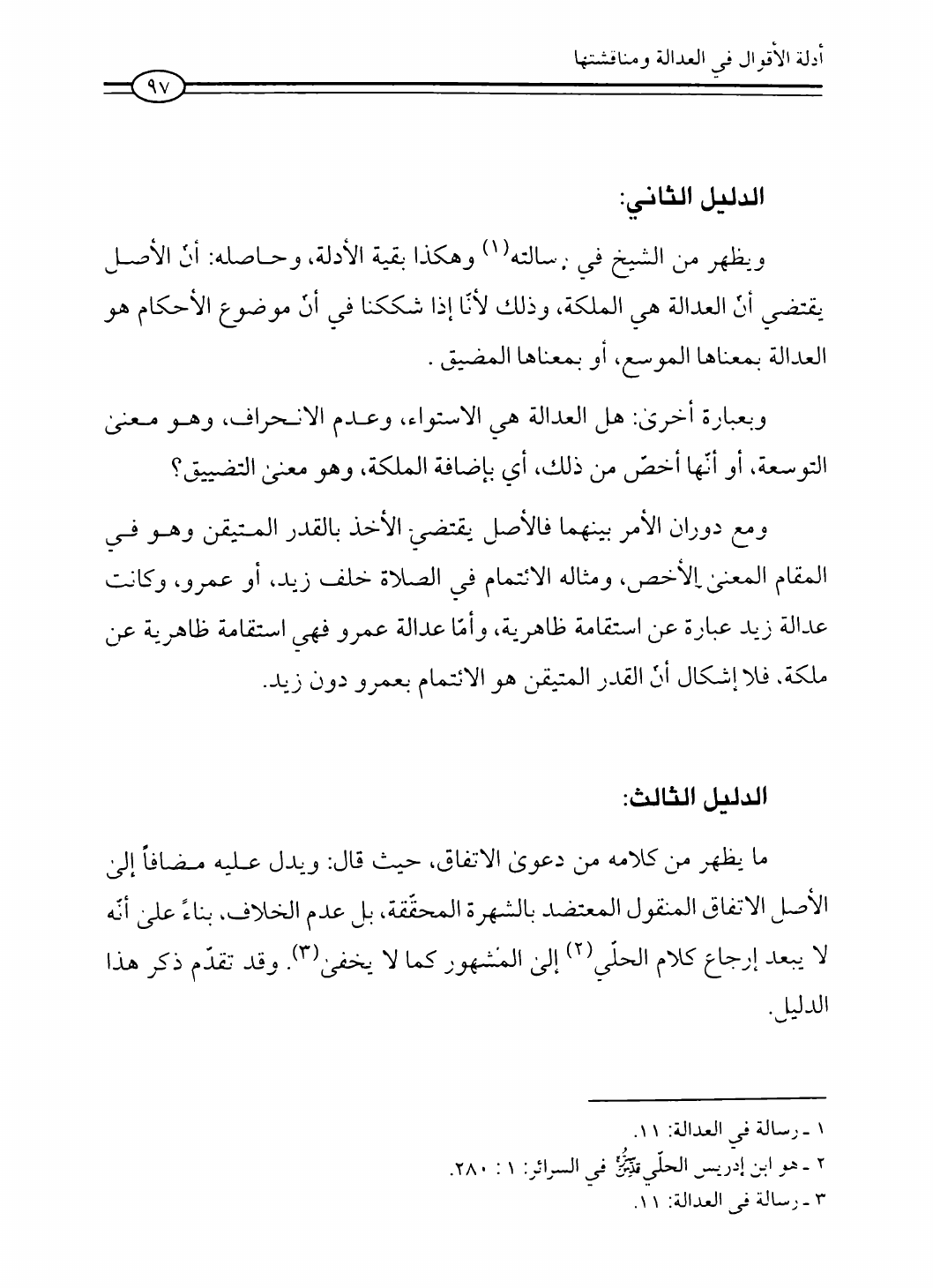 نام کتاب : العدالة في فقه أهل البيت عليهم السلام، تقريراً لبحث أية الله الحاج الشيخ مسلم الداوري نویسنده : الشيخ محمد علي صالح المعلم جلد : 1 صفحه : 97