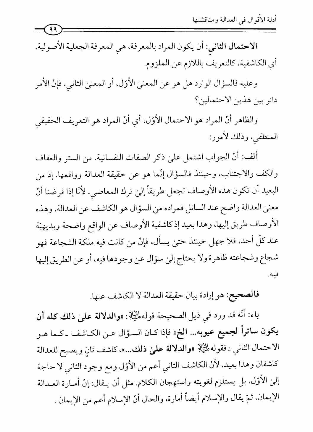 نام کتاب : العدالة في فقه أهل البيت عليهم السلام، تقريراً لبحث أية الله الحاج الشيخ مسلم الداوري نویسنده : الشيخ محمد علي صالح المعلم جلد : 1 صفحه : 99