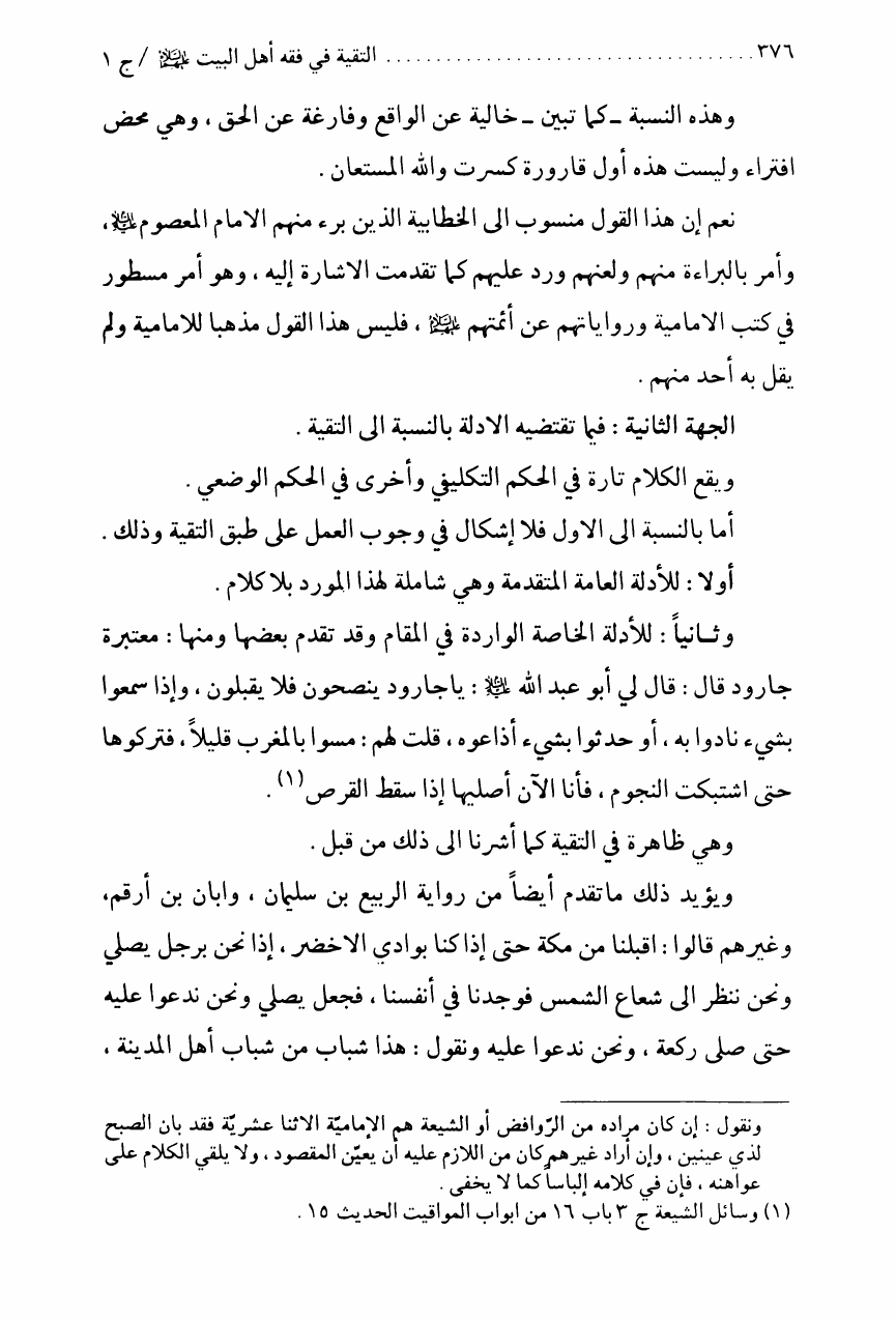نام کتاب : التقية في فقه أهل البيت عليهم السلام، تقريراً لبحث أية الله الحاج الشيخ مسلم الداوري - ج1ج2ج3 نویسنده : الشيخ محمد علي صالح المعلم جلد : 1 صفحه : 376