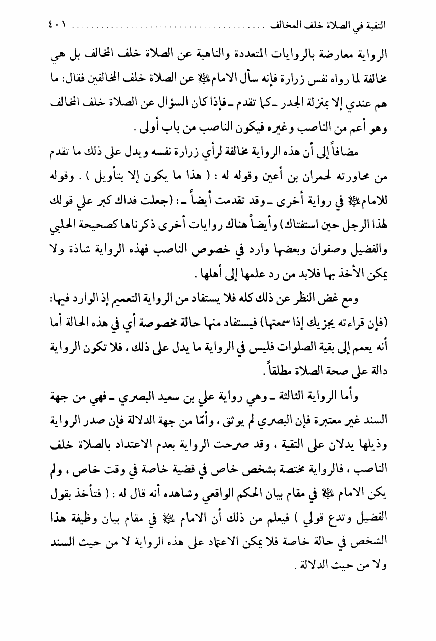 نام کتاب : التقية في فقه أهل البيت عليهم السلام، تقريراً لبحث أية الله الحاج الشيخ مسلم الداوري - ج1ج2ج3 نویسنده : الشيخ محمد علي صالح المعلم جلد : 1 صفحه : 401