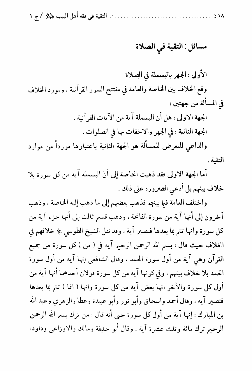 نام کتاب : التقية في فقه أهل البيت عليهم السلام، تقريراً لبحث أية الله الحاج الشيخ مسلم الداوري - ج1ج2ج3 نویسنده : الشيخ محمد علي صالح المعلم جلد : 1 صفحه : 418