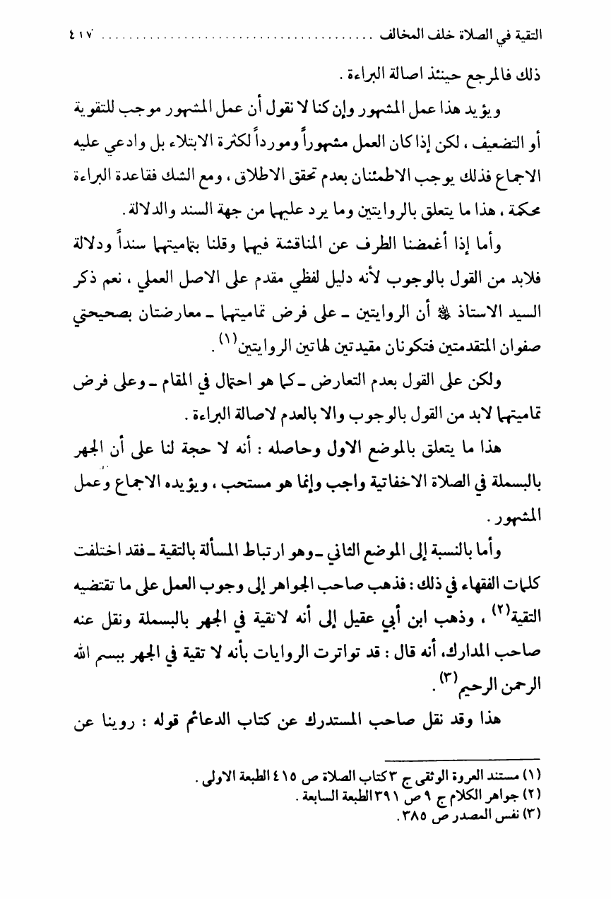 نام کتاب : التقية في فقه أهل البيت عليهم السلام، تقريراً لبحث أية الله الحاج الشيخ مسلم الداوري - ج1ج2ج3 نویسنده : الشيخ محمد علي صالح المعلم جلد : 1 صفحه : 427