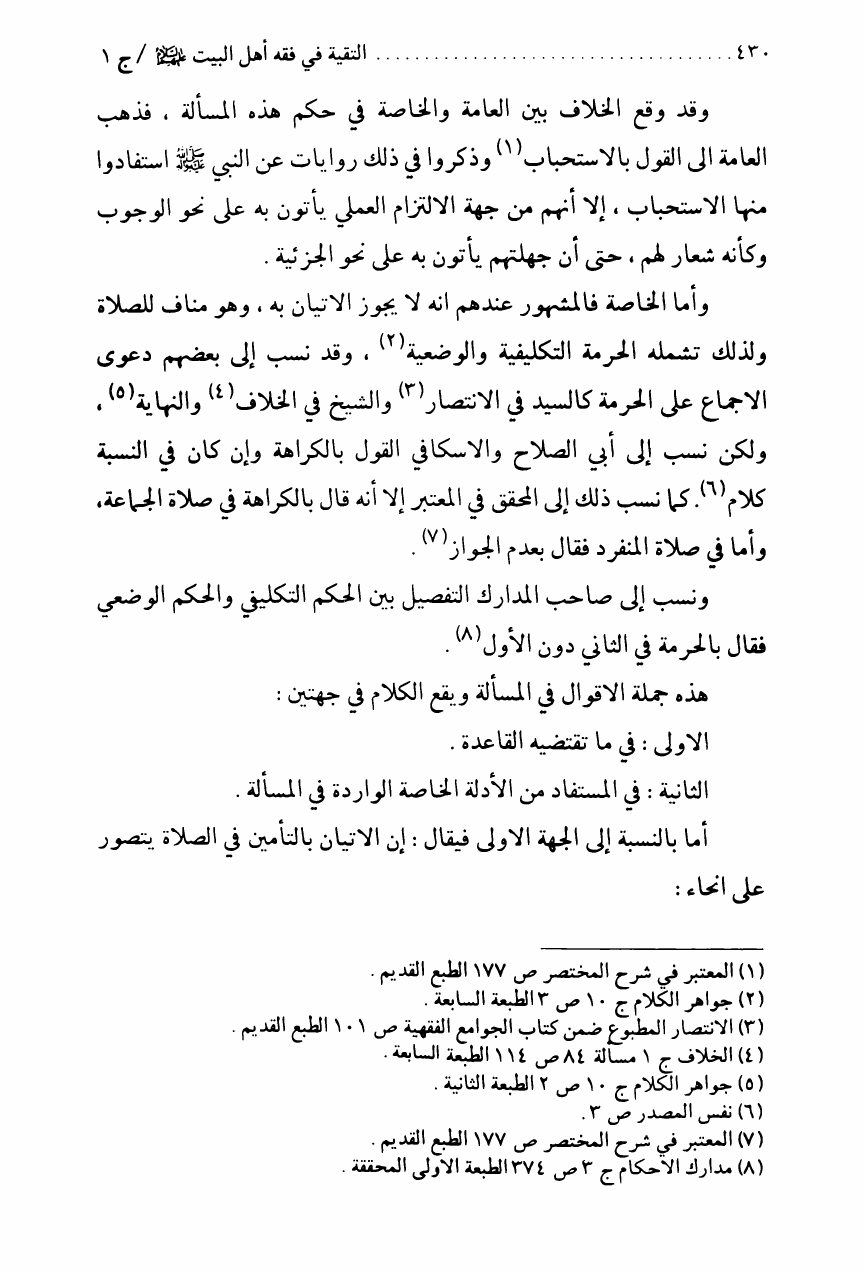 نام کتاب : التقية في فقه أهل البيت عليهم السلام، تقريراً لبحث أية الله الحاج الشيخ مسلم الداوري - ج1ج2ج3 نویسنده : الشيخ محمد علي صالح المعلم جلد : 1 صفحه : 430