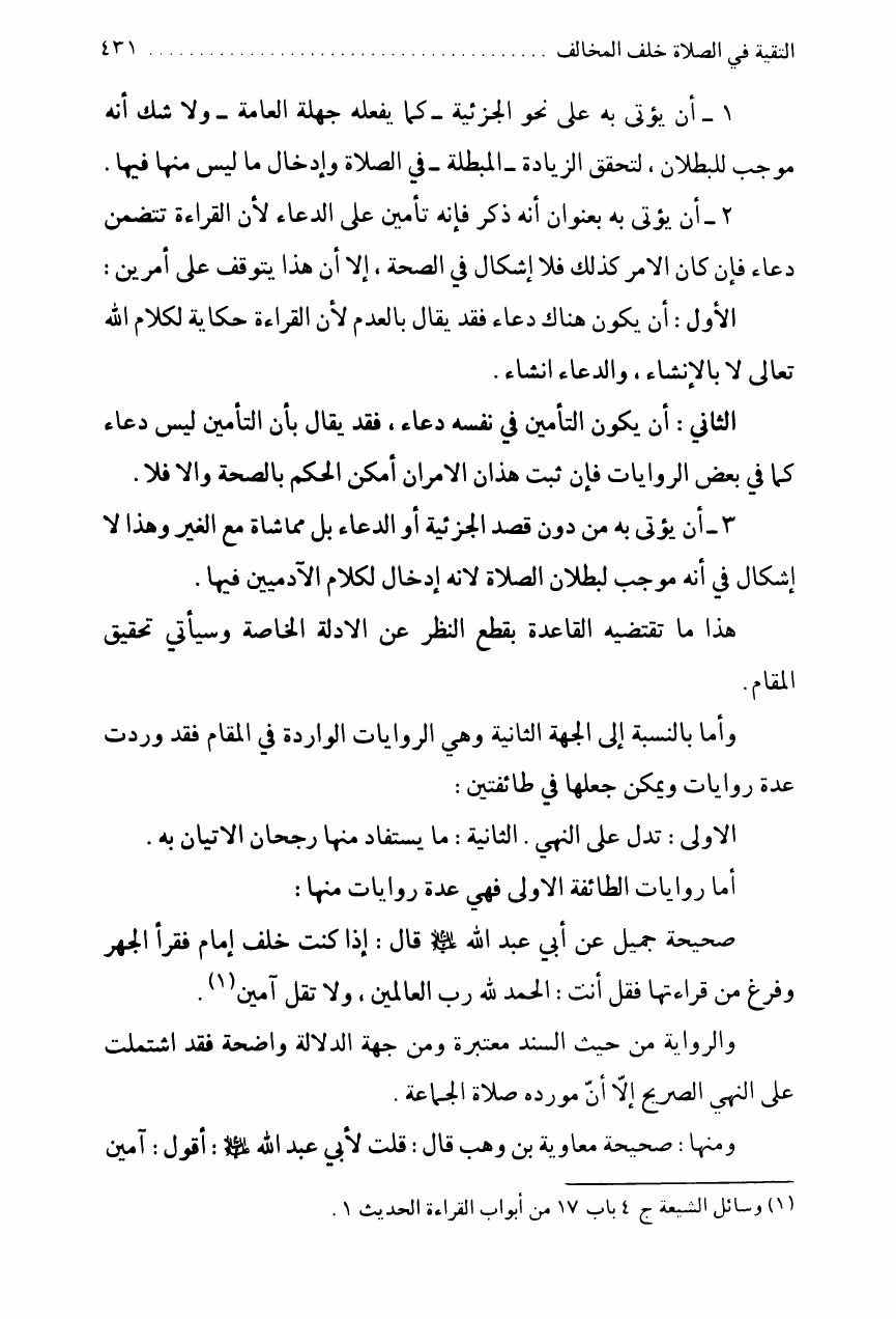 نام کتاب : التقية في فقه أهل البيت عليهم السلام، تقريراً لبحث أية الله الحاج الشيخ مسلم الداوري - ج1ج2ج3 نویسنده : الشيخ محمد علي صالح المعلم جلد : 1 صفحه : 431