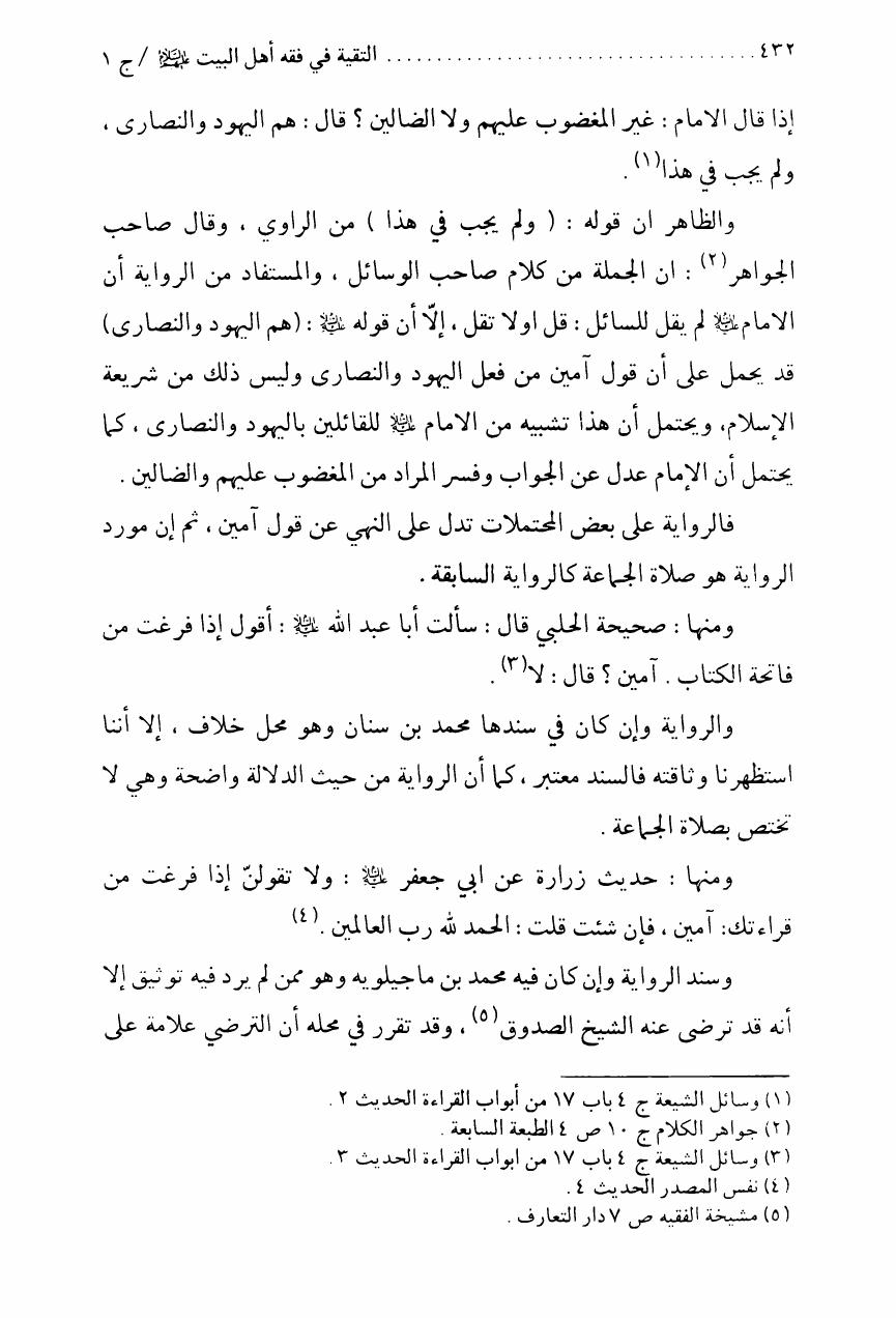 نام کتاب : التقية في فقه أهل البيت عليهم السلام، تقريراً لبحث أية الله الحاج الشيخ مسلم الداوري - ج1ج2ج3 نویسنده : الشيخ محمد علي صالح المعلم جلد : 1 صفحه : 432