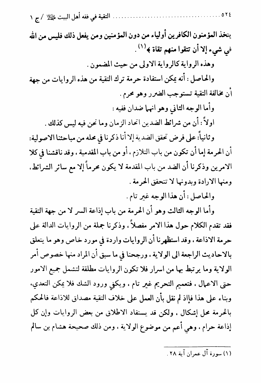 نام کتاب : التقية في فقه أهل البيت عليهم السلام، تقريراً لبحث أية الله الحاج الشيخ مسلم الداوري - ج1ج2ج3 نویسنده : الشيخ محمد علي صالح المعلم جلد : 1 صفحه : 524