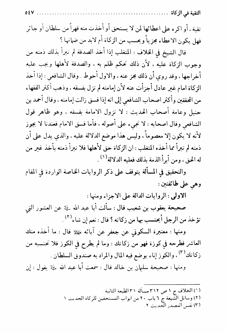 نام کتاب : التقية في فقه أهل البيت عليهم السلام، تقريراً لبحث أية الله الحاج الشيخ مسلم الداوري - ج1ج2ج3 نویسنده : الشيخ محمد علي صالح المعلم جلد : 1 صفحه : 547