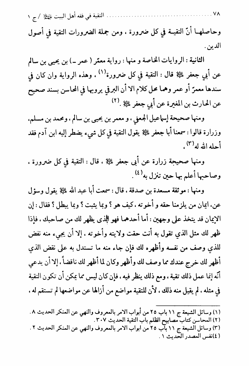 نام کتاب : التقية في فقه أهل البيت عليهم السلام، تقريراً لبحث أية الله الحاج الشيخ مسلم الداوري - ج1ج2ج3 نویسنده : الشيخ محمد علي صالح المعلم جلد : 1 صفحه : 78