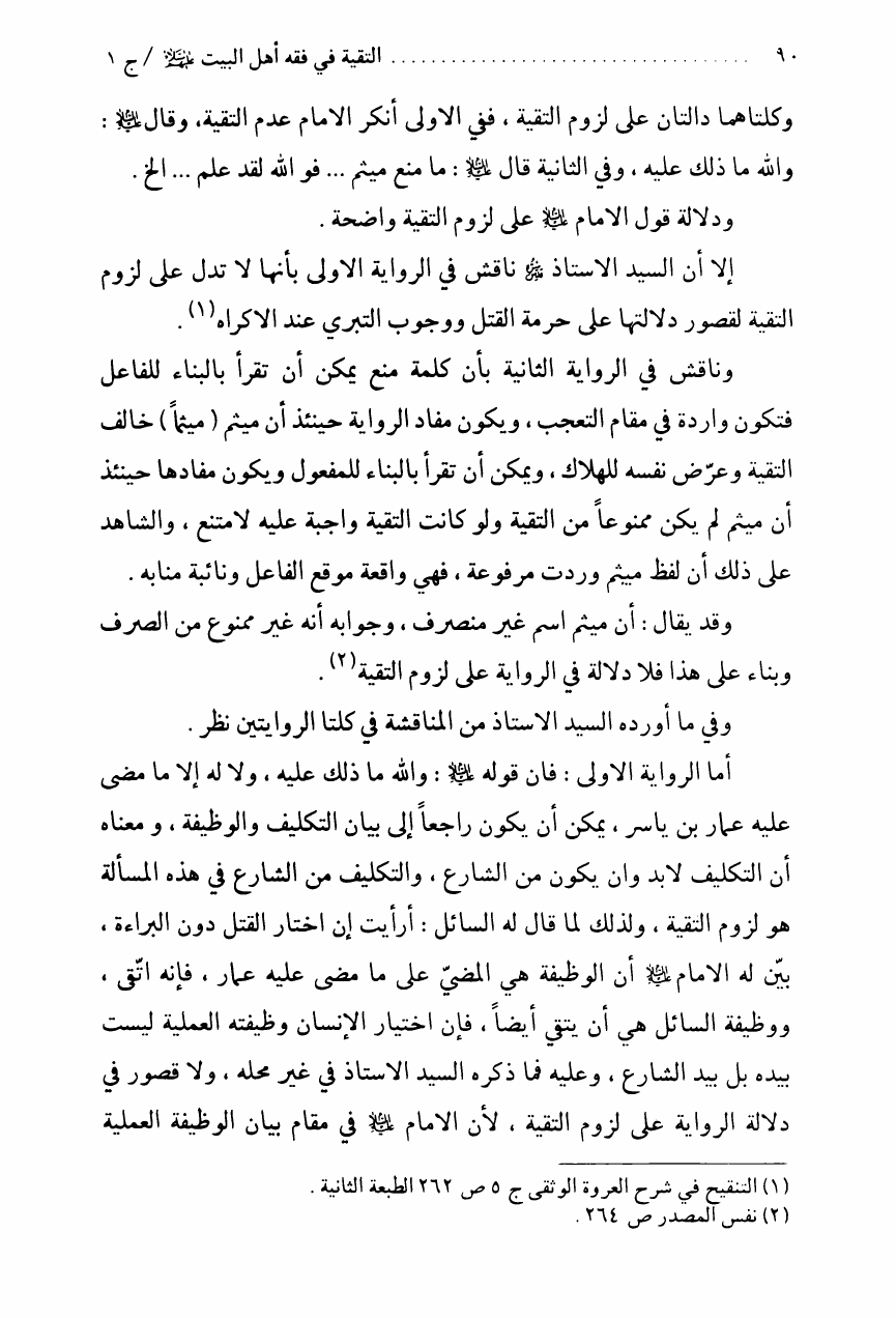 نام کتاب : التقية في فقه أهل البيت عليهم السلام، تقريراً لبحث أية الله الحاج الشيخ مسلم الداوري - ج1ج2ج3 نویسنده : الشيخ محمد علي صالح المعلم جلد : 1 صفحه : 90