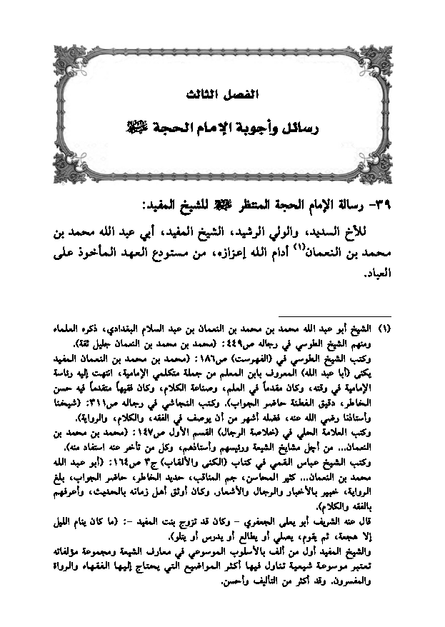 الدرر، توقيعات المهدي المنتظر، ما خرج عن الإمام خلال الغيبة الصغرى ورسائل الشيخ المفيد