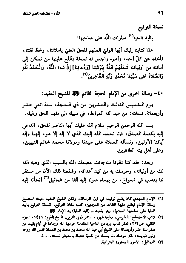 الدرر، توقيعات المهدي المنتظر، ما خرج عن الإمام خلال الغيبة الصغرى ورسائل الشيخ المفيد