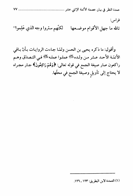 عمدة النظر في بيان عصمة الأئمة الإثنى عشر (عليه السلام)