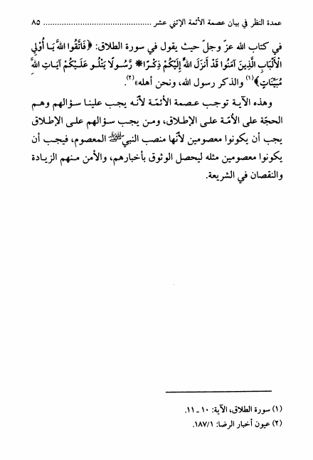 عمدة النظر في بيان عصمة الأئمة الإثنى عشر (عليه السلام)