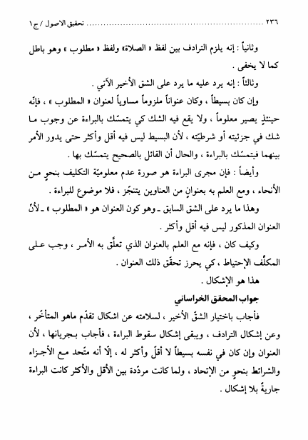 نام کتاب : تحقيق الأصول على ضوء أبحاث شيخنا الفقيه المحقق والأصولي المدقق آية الله العظمى الوحيد الخراساني - 6 أجزاء نویسنده : السيد علي الحسيني الميلاني جلد : 1 صفحه : 236