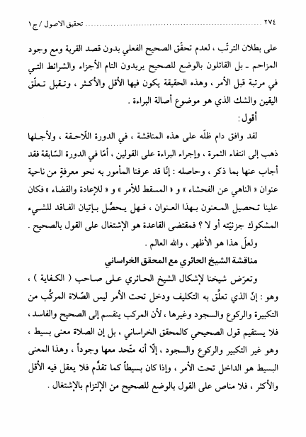 نام کتاب : تحقيق الأصول على ضوء أبحاث شيخنا الفقيه المحقق والأصولي المدقق آية الله العظمى الوحيد الخراساني - 6 أجزاء نویسنده : السيد علي الحسيني الميلاني جلد : 1 صفحه : 274