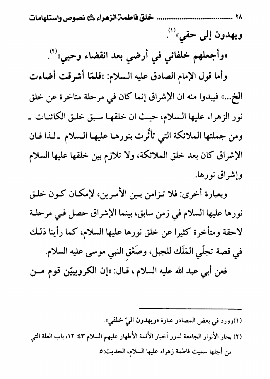 خلق فاطمة الزهراء ع ، نصوص واستلهامات