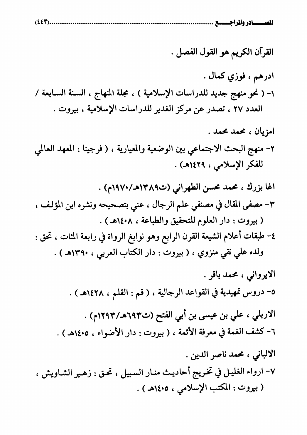 الأسس المنهجية في نقد الأصول الرجالية ، حتى نهاية القرن الخامس الهجري