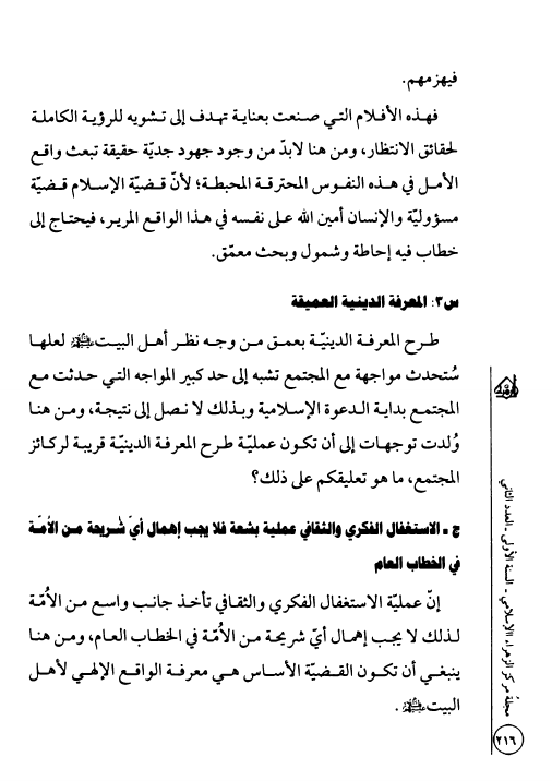 مجلة مركز الزهراء الإسلامي - العدد الثاني ، السنة الأولى