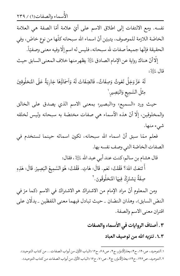 التوحيد ، والأسماء والصفات الإلهية