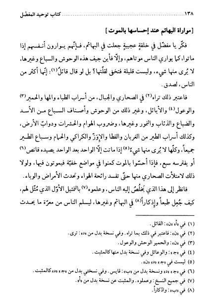 كتاب فكّر المعروف بتوحيد المفضل ، أملاه الإمام أبوعبدالله الصادق عليه السلام