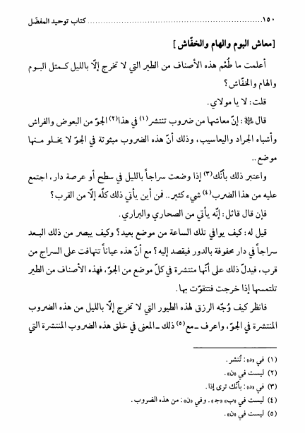 كتاب فكّر المعروف بتوحيد المفضل ، أملاه الإمام أبوعبدالله الصادق عليه السلام