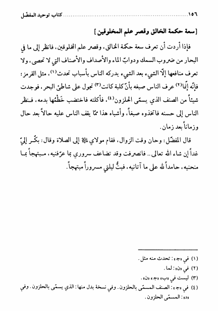 كتاب فكّر المعروف بتوحيد المفضل ، أملاه الإمام أبوعبدالله الصادق عليه السلام